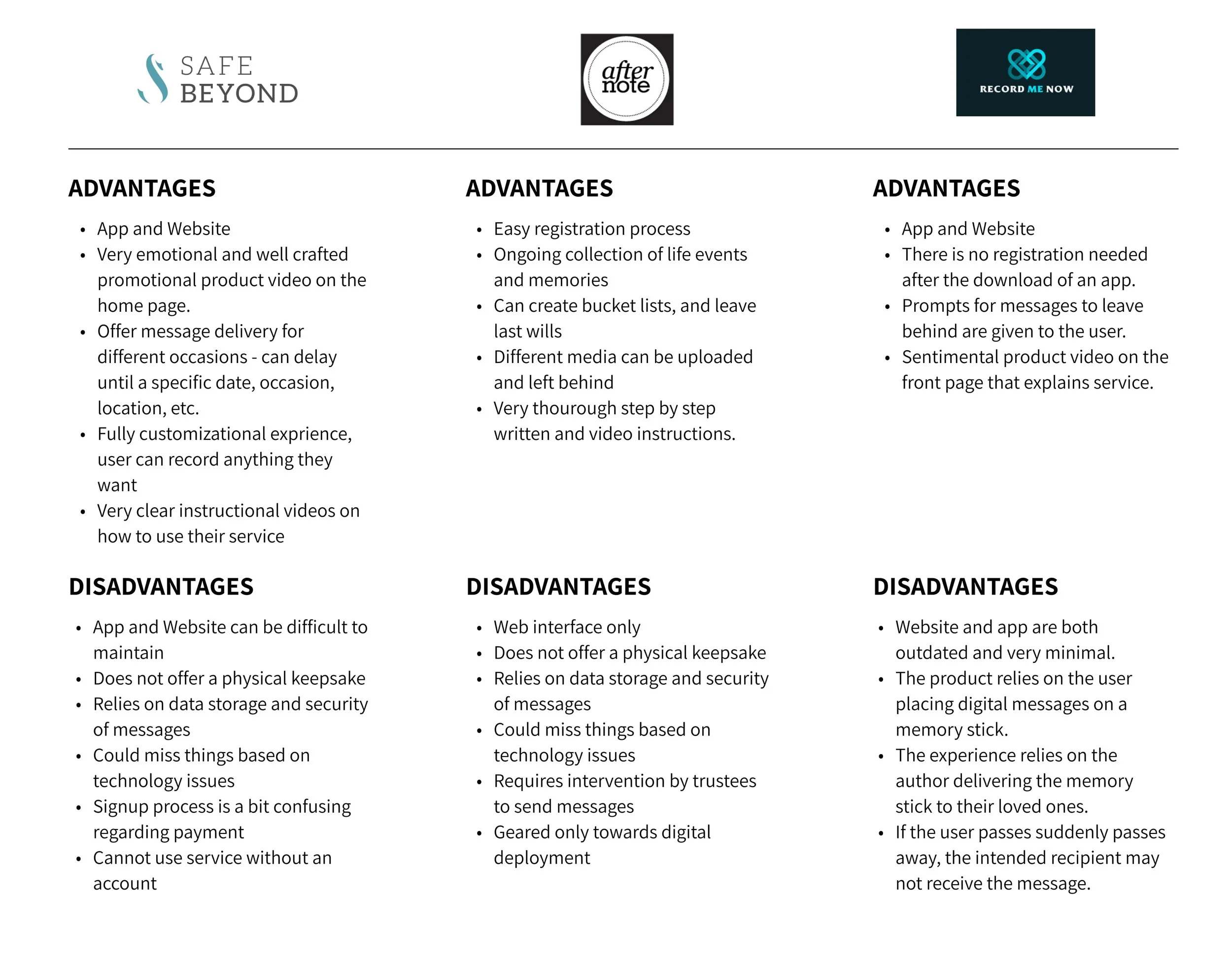 A Touch from Beyond cards are a unique and niche product, and I could not find any direct competitors. I decided to do an indirect competitive analysis to see how other similar companies structured their sites and marketed their service, and if there were gaps A Touch from Beyond could fill in the market.