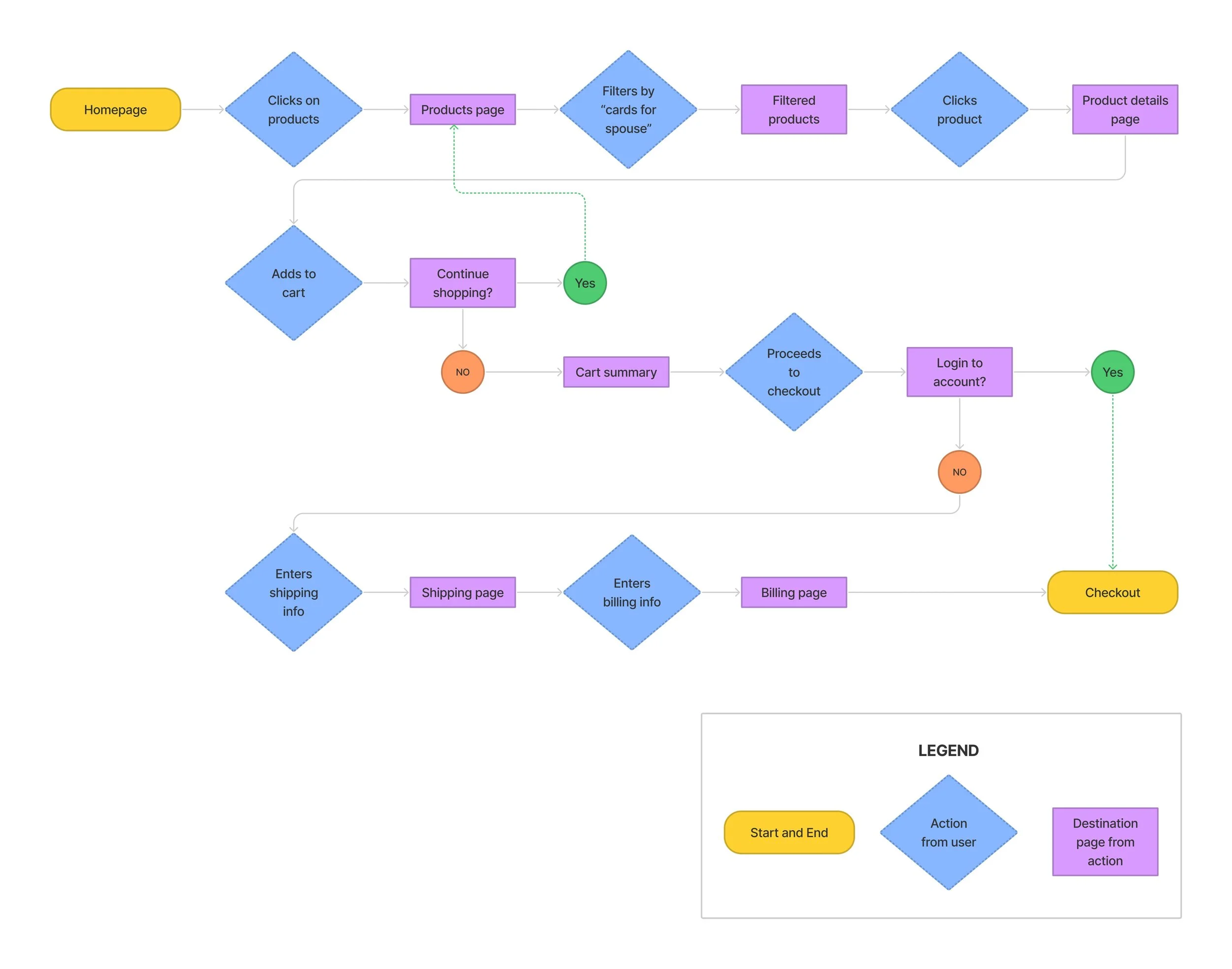 One of our major challenges was creating an e-commerce experience for A Touch from Beyond. To visualize the simplest and shortest steps for their users, I created a user flow of the purchasing step.