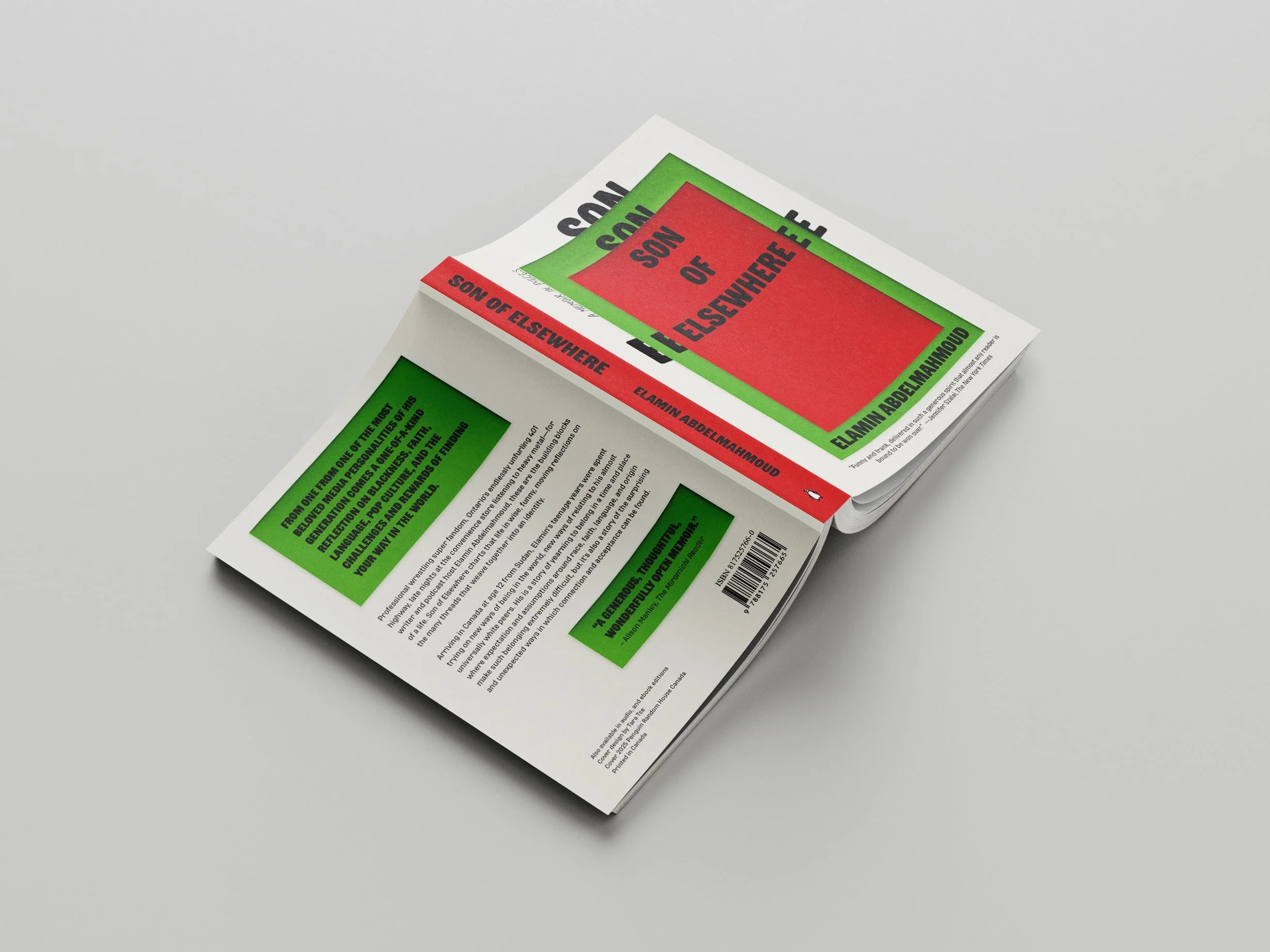 Book cover design concept for Elamin Abdelmahmoud’s Son of Elsewhere. The minimalist, cut-out design captures the book’s themes of being between Sudanese and Canadian culture, and the author’s forward journey towards acceptance. Shortlisted for Penguin Random House Canada’s 2025 Cover Competition.